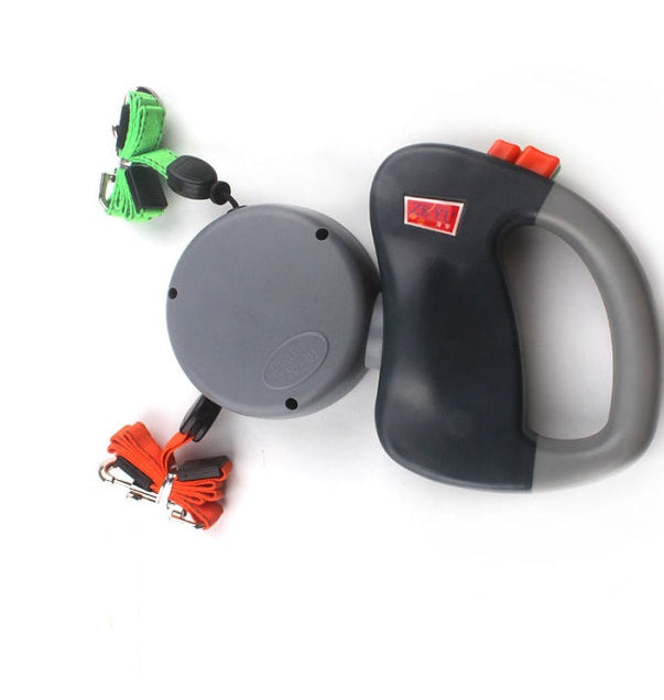 3 meters infällbart, dubbelt hundkoppel. Flexi-koppel i 3 olika färger.